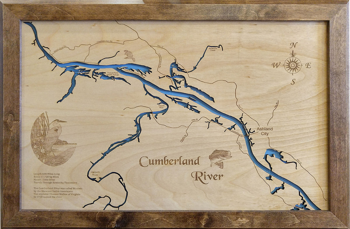 Cumberland River, KY/TN Ashland Laser Cut Wood Map| Personal