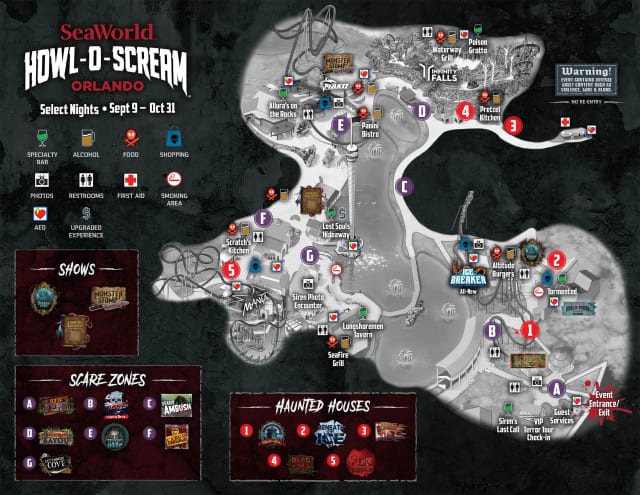 Seaworld Orlando Howl O Scream Map – SeaWorld’s Howl-O-Scream is an after-hours, extra-ticket event held on select nights through Nov. 2. Spooktacular, the park’s less harrowing, kid-friendly daytime event that’s included with regular . SeaWorld Orlando has released its entire lineup of haunted houses and scare zones of the upcoming Howl-O-Scream, its after-hours, extra-ticket Halloween scare fest. The event, which starts Sept. .